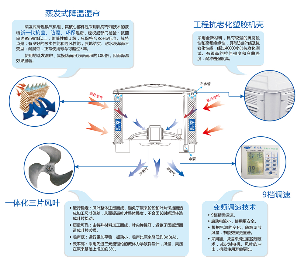 科瑞萊”蒸發(fā)式冷氣機結構示意圖及特點: